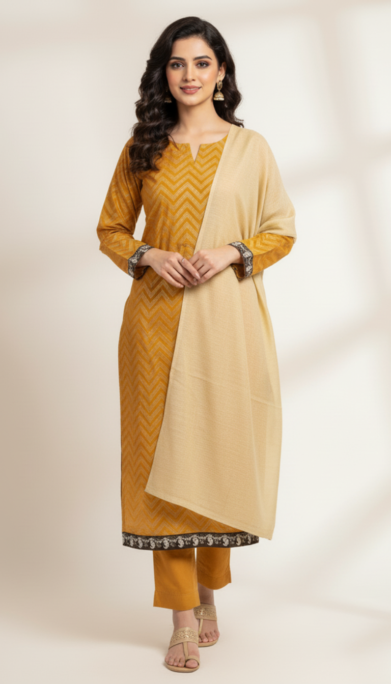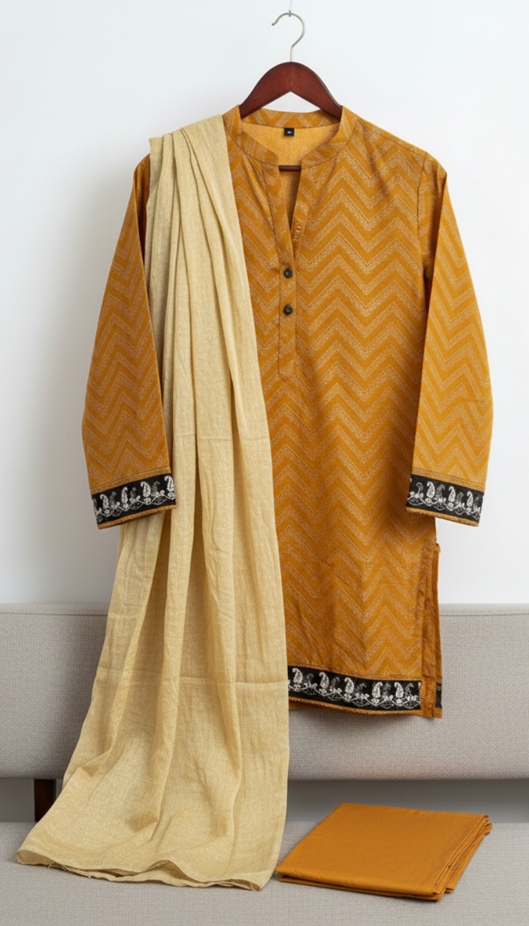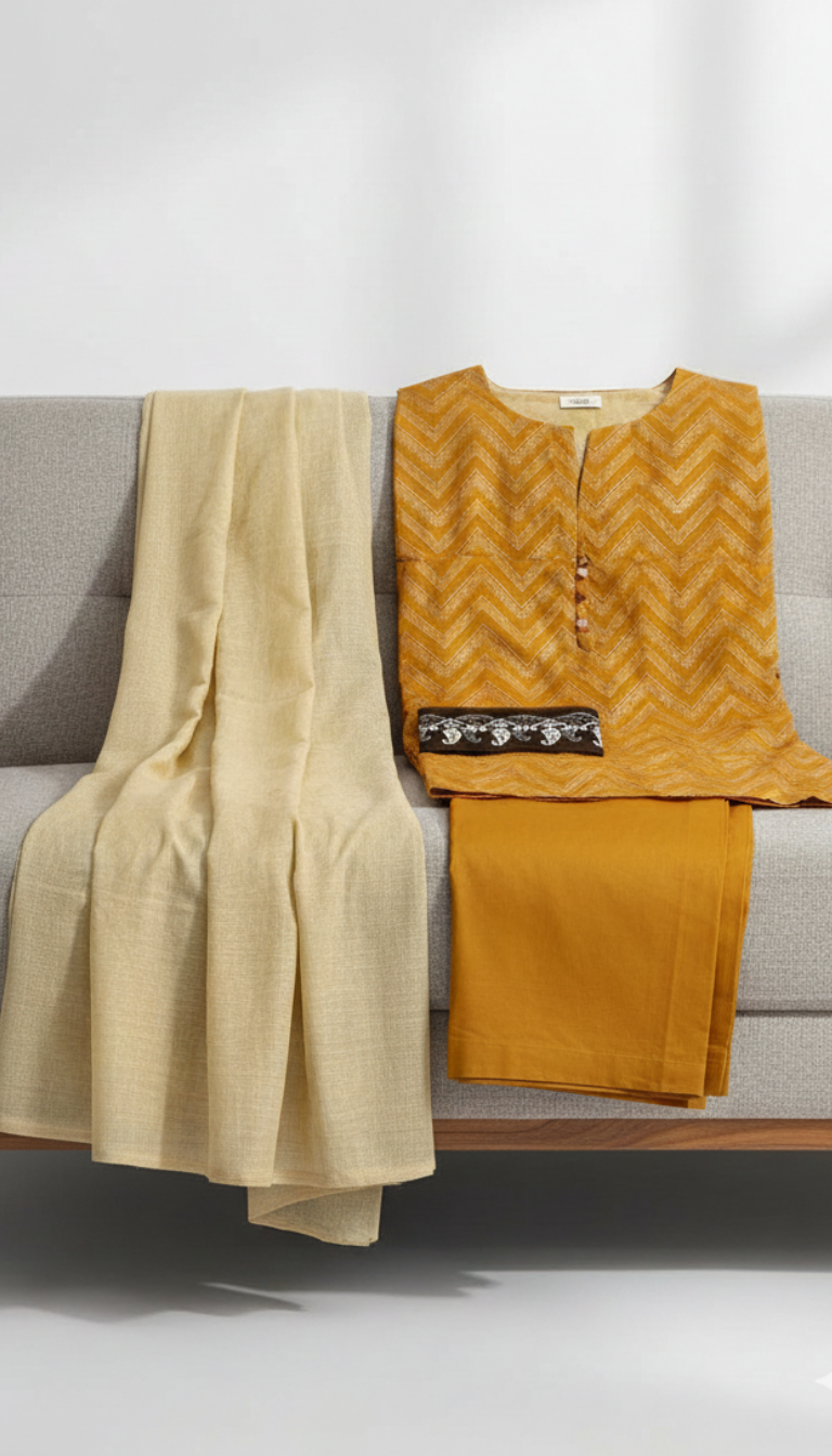 Add a touch of shimmer to your wardrobe with our 3 Piece Glitter Dyed Lawn Suit. Crafted from soft, breathable lawn fabric, this elegant set includes a glitter-dyed shirt, a matching trouser, and a coordinating dupatta for a complete, polished look. Perfect for casual outings, festive occasions, or semi-formal gatherings, this outfit blends comfort with subtle glamour.